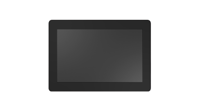 100% flat-front 12.1" industrial touch monitor with an ultra-thin profile, smooth rounded corners, and a rugged glass front for a modern look.